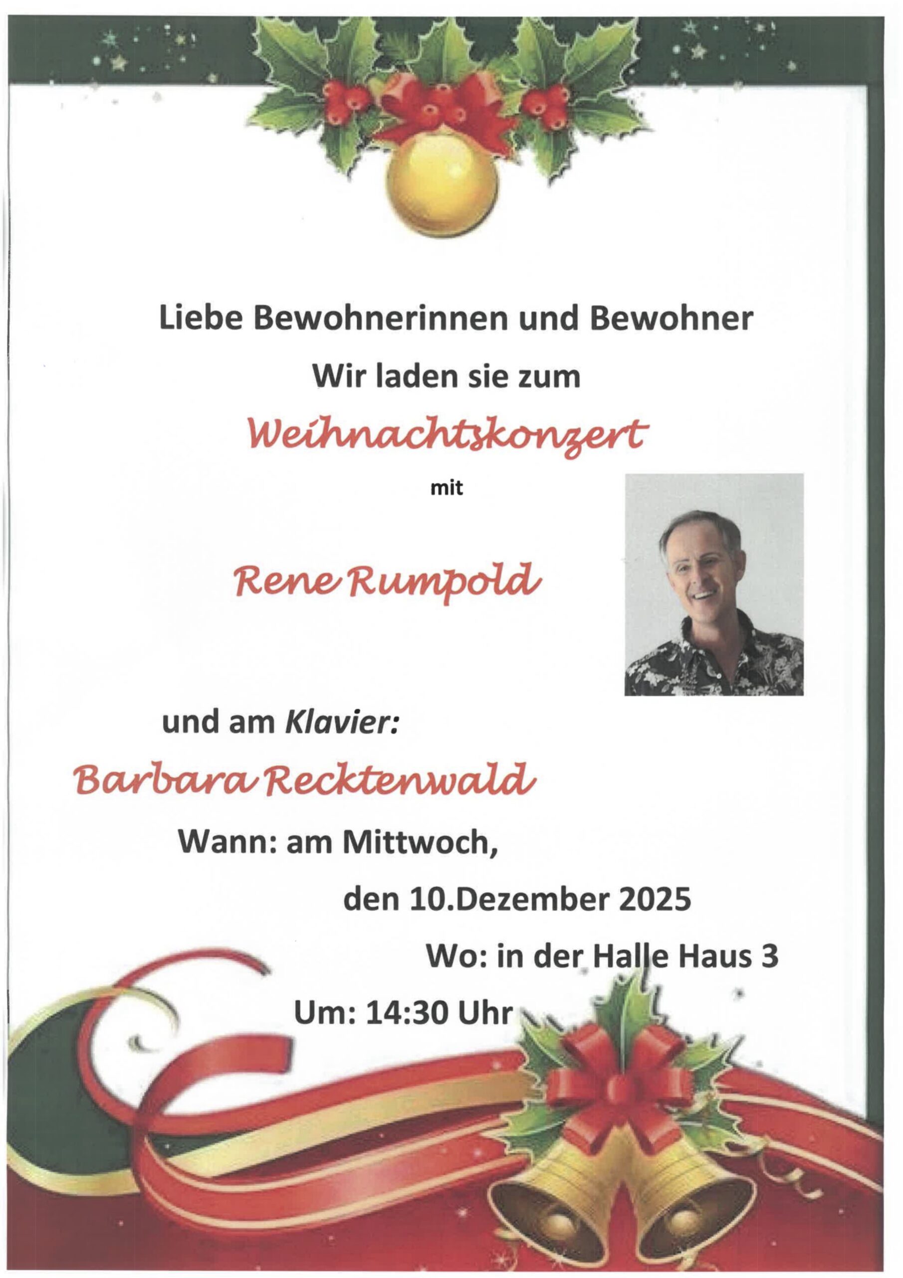 René Rumpold zeichnet auch dieses Weihnachtsfest gemeinsam mit Barbara Rektenwald für die Weihnacht in der Seniorenresidenz Hülgerthpark verantwortlich.